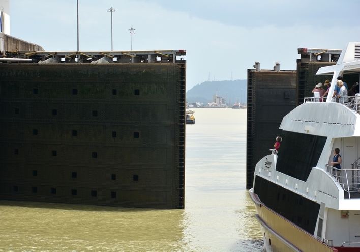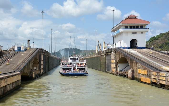 Kanalen blev bygget i perioden 1904-1914 under ledelse af USA, som reelt ejede kanalzonen, en ti km bred zone på begge sider af kanalen indtil år 2000, hvor den overgik til Panamá. De amerikanske militærforlægninger og bygninger ses i dag. I 1880’rne havde franskmænd forsøgt at bygge kanalen, men uden held – mange døde pga. klimaet, malaria og gul feber. Idag – 100 år efter kanalen stod færdig – er man i færd med at udvide kanalen med endnu et spor, så de allerstørste containerskibe kan passere. Kanalen har tre sluser, to på Stillehavssiden og én på den caribiske side. Panamá City ligger ved Stillehavssiden.